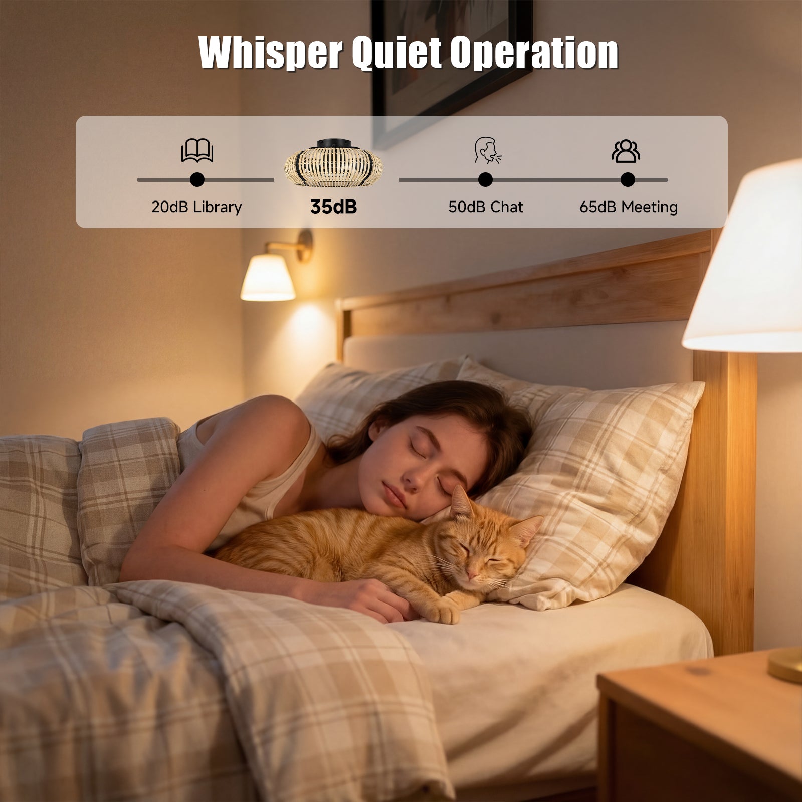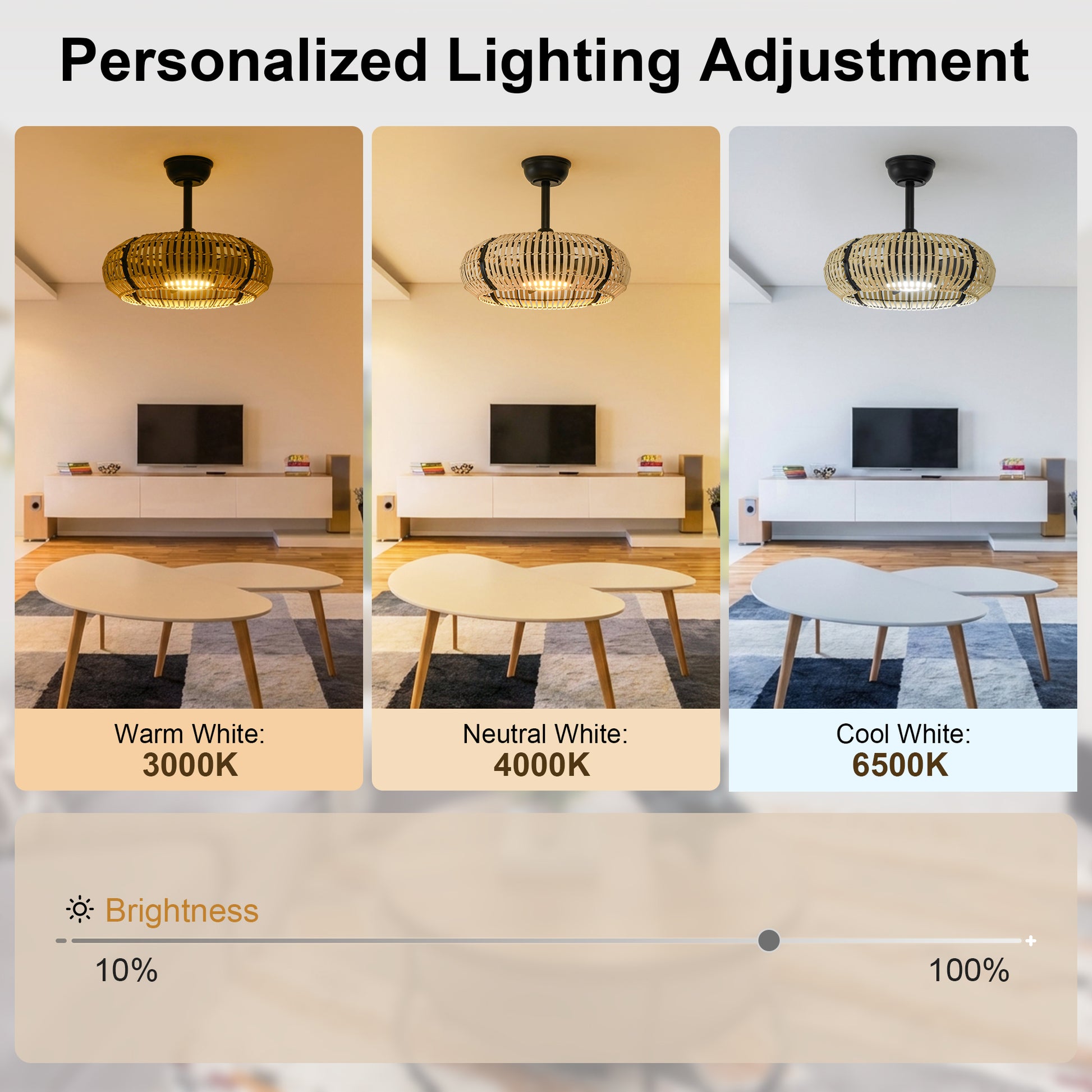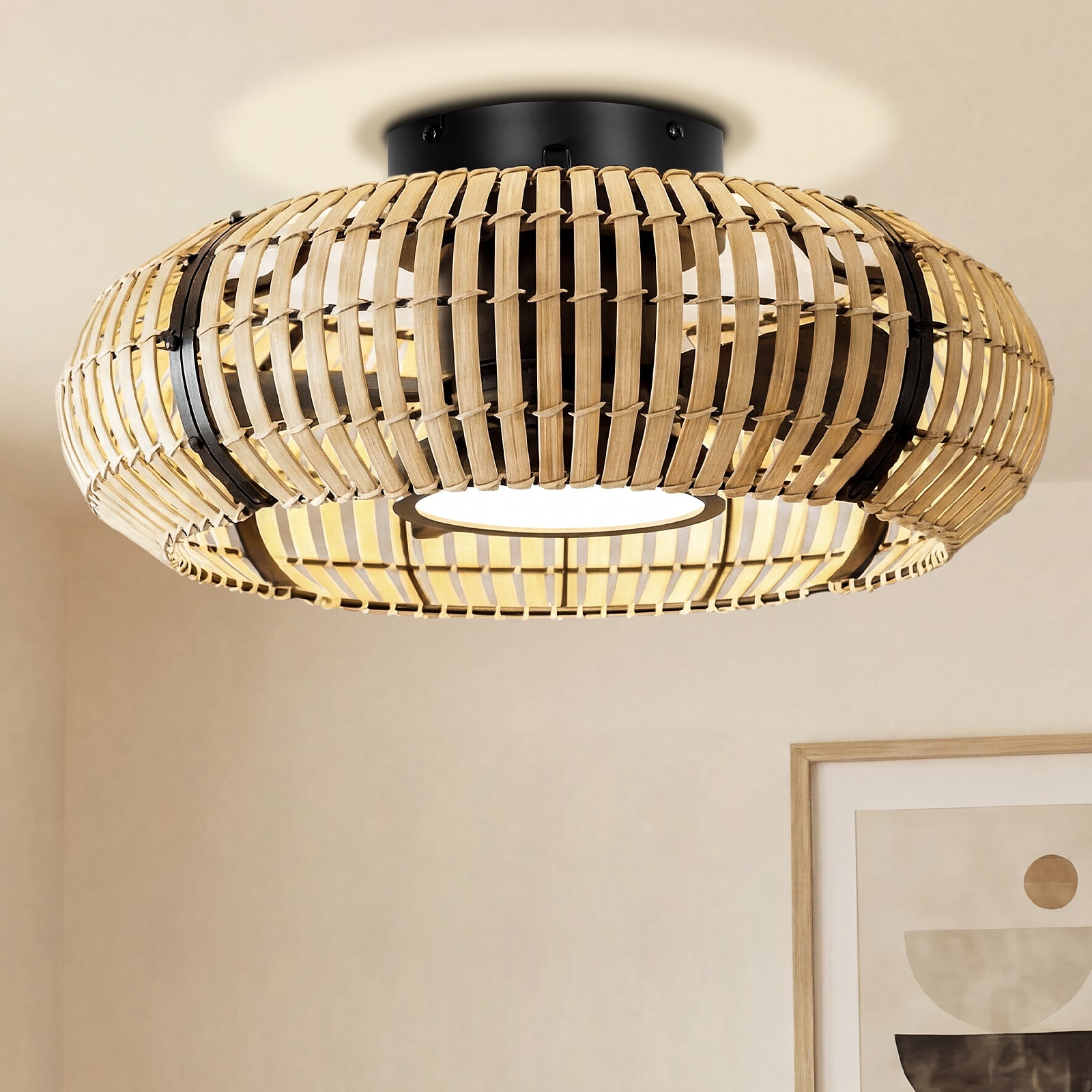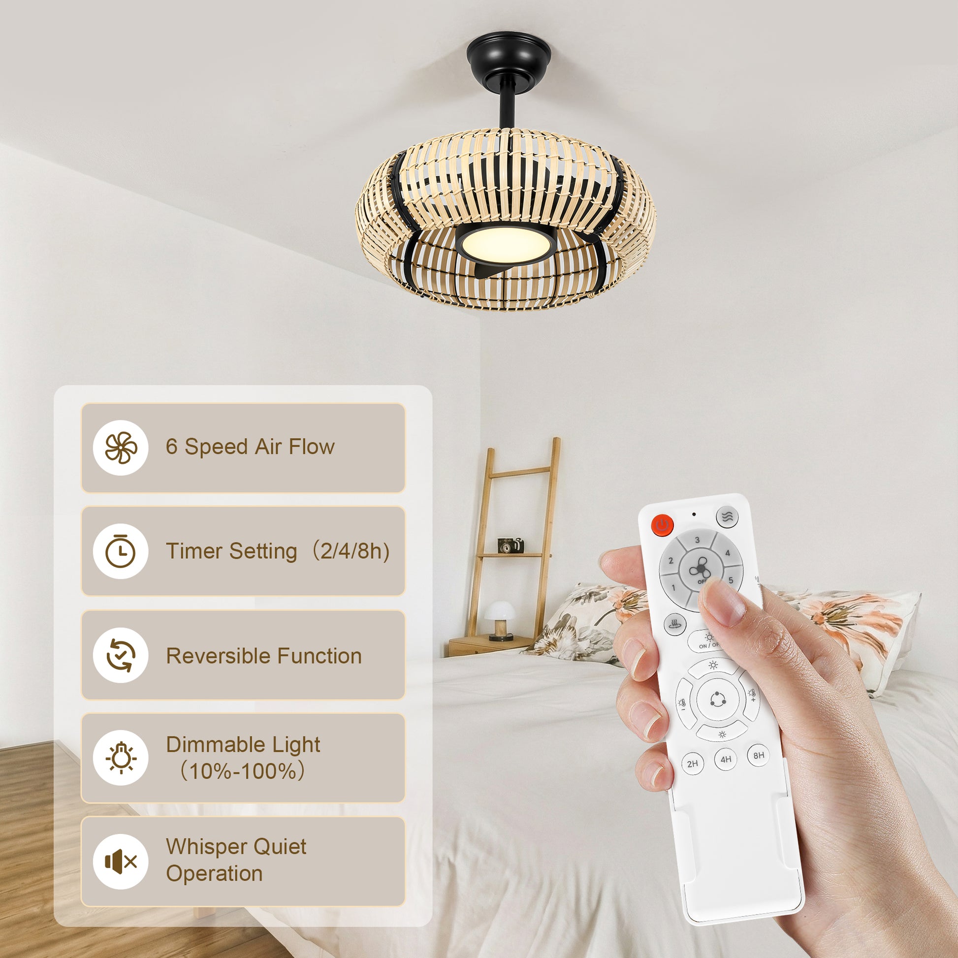 20 Inch LED Caged Bamboo Chip Ceiling Fan