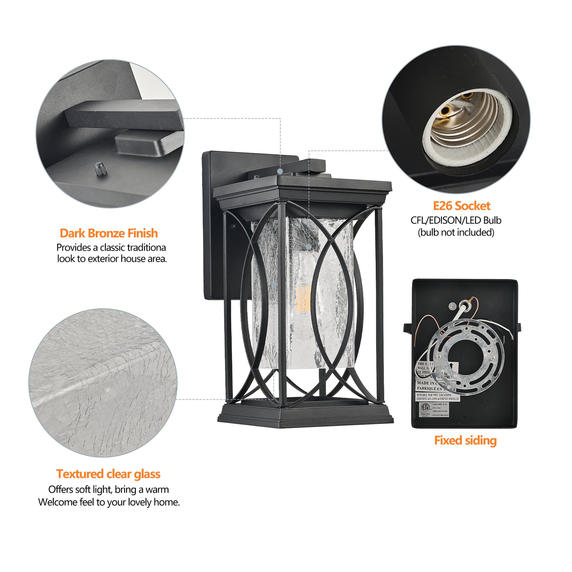 Exterior Light Fixtures Black Aluminum with Crack-Like Glass