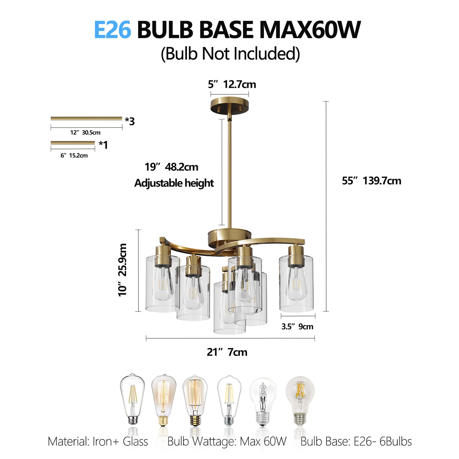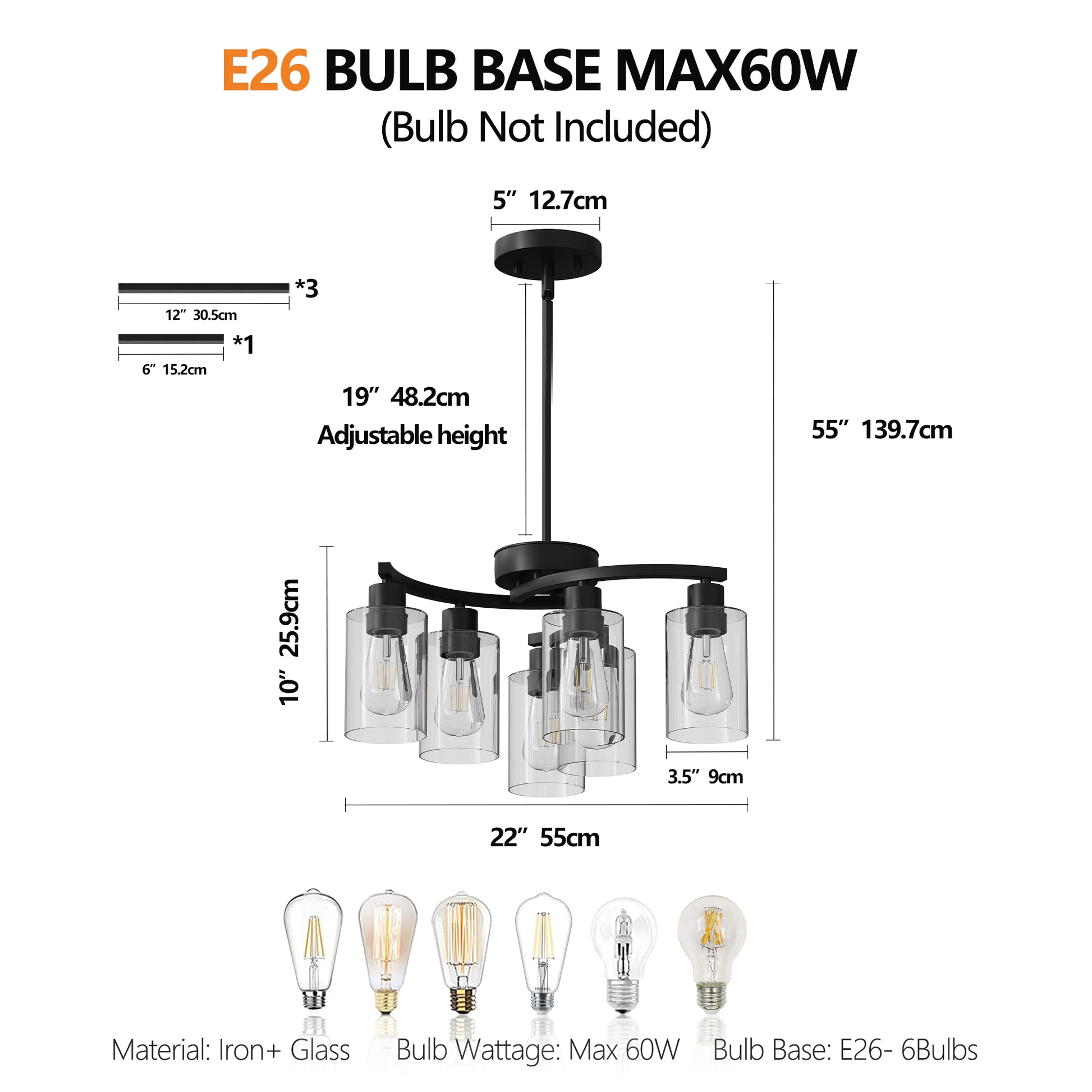 Our lighting fixtures typically use standard E26 or E12 bulbs, depending on the design. Bulb requirements are clearly listed on each product page.