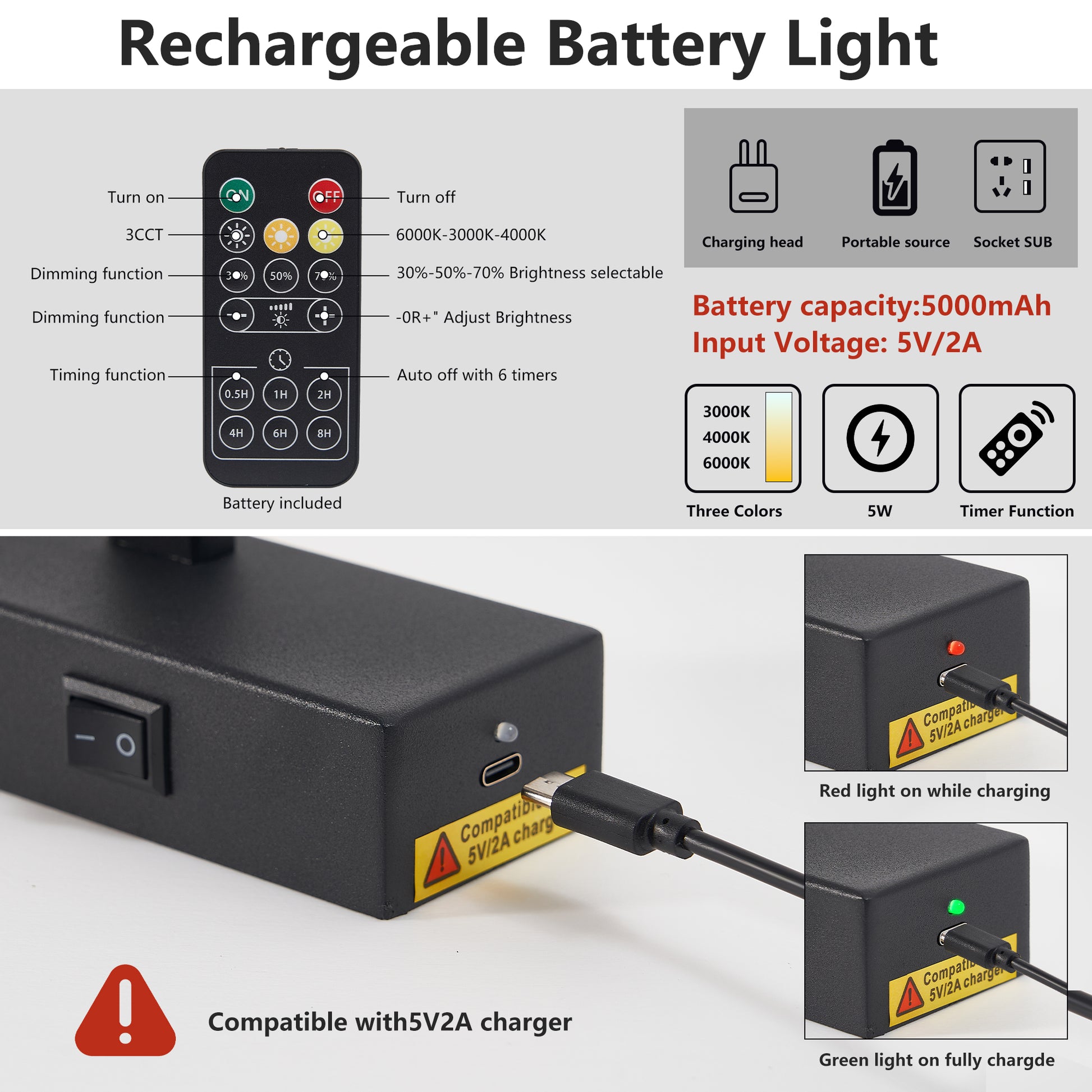 Rechargable Wall Lights Rotatable Sconce with Remote Control